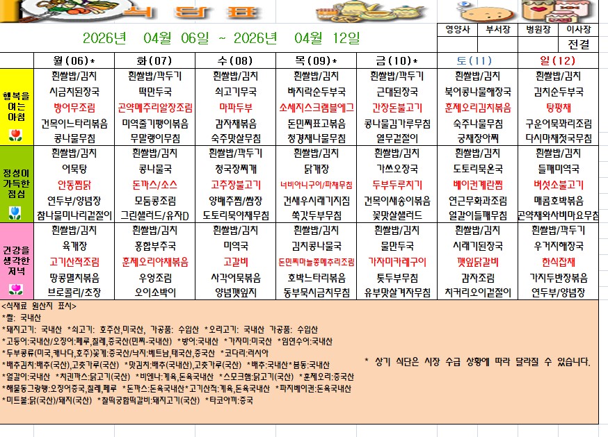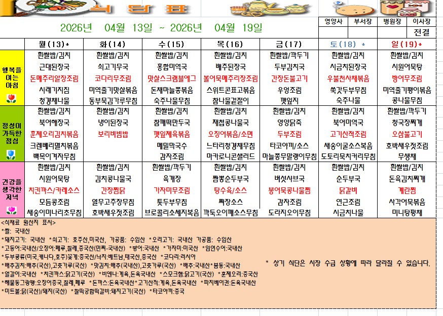 주간식단표